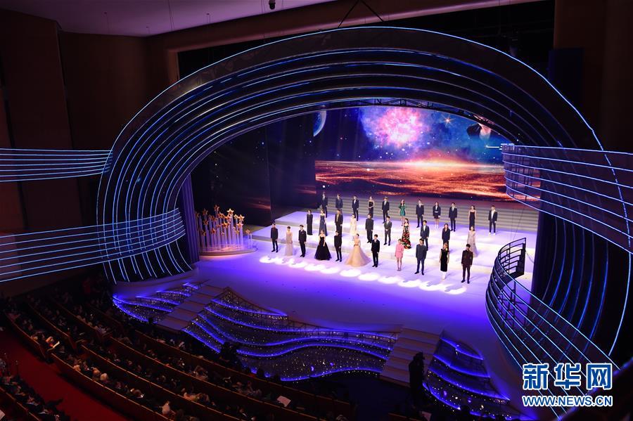 11月19日,演員代表在第28屆中國金雞百花電影節(jié)開幕式上演唱歌曲《星辰大海》。新華社記者姜克紅攝