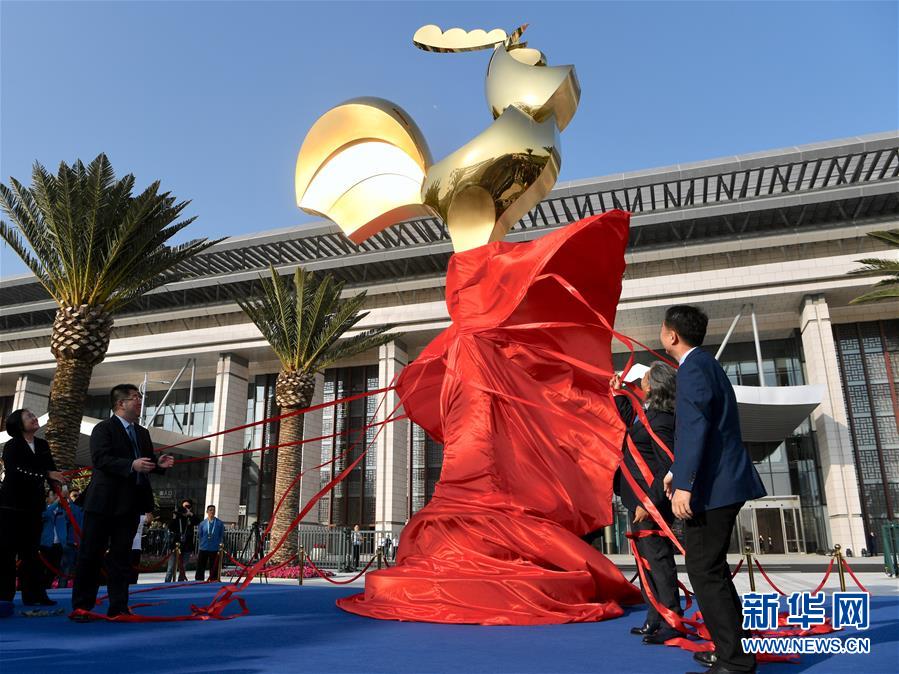 11月19日,金雞雕塑在第28屆金雞百花電影節(jié)金雞雕塑揭幕儀式上亮相。新華社記者姜克紅攝