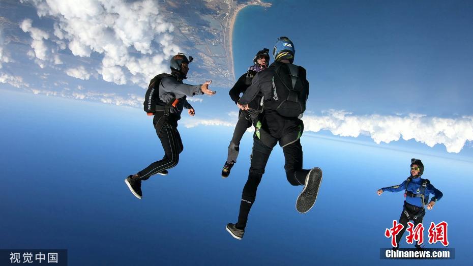 11月20日訊,以色列一群跳傘者在從一萬三千英尺(約3962米)的高空進行跳傘,墜落時盡情嬉戲、舞動和翻跟斗。圖片來源:視覺中國
