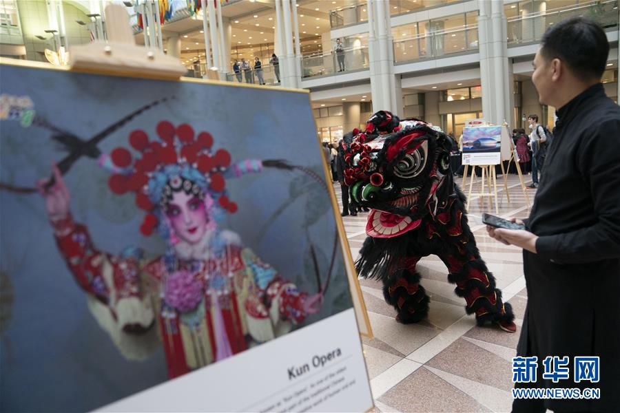 11月22日,在美國華盛頓,演員在“北京日”文化廟會活動上表演舞獅。作為中國北京和美國首都華盛頓締結友好城市35周年慶?;顒拥囊徊糠郑氨本┤铡蔽幕瘡R會22日在華盛頓羅納德·里根大廈和國際貿(mào)易中心舉行。新華社記者劉杰攝