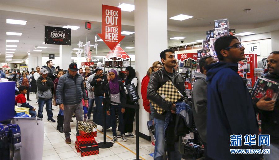 11月28日,顧客在美國舊金山灣區(qū)一家奧特萊斯購物。當(dāng)日,美國眾多商家競相開展“黑色星期五”促銷活動,吸引大批顧客搶購。 新華社記者吳曉凌攝