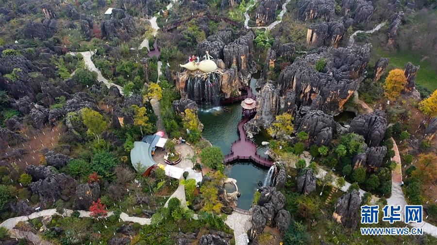 這是云南石林彝族自治縣黑石箐石林景觀(11月28日無人機拍攝)。新華社記者張愛林?jǐn)z