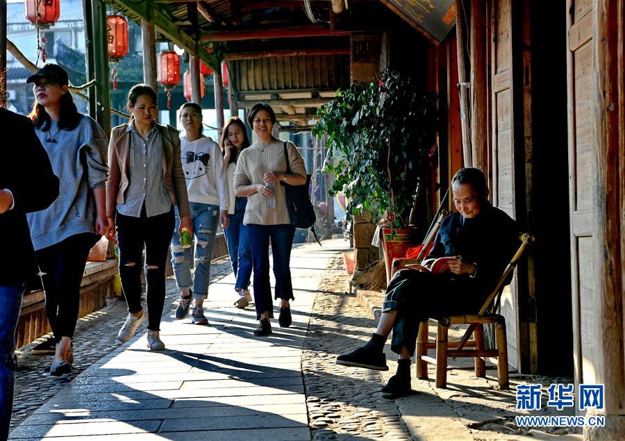 游客在武夷山下梅村游覽(11月5日攝)。福建省武夷山市下梅村是“中國歷史文化名村”,這里歷史悠久,人文薈萃,至今保存著70余幢明清時(shí)代的古民居。人工運(yùn)河穿村而過,古民居、涼亭、古街等構(gòu)成了別具特色的江南水鄉(xiāng)風(fēng)景。新華社記者馬平攝