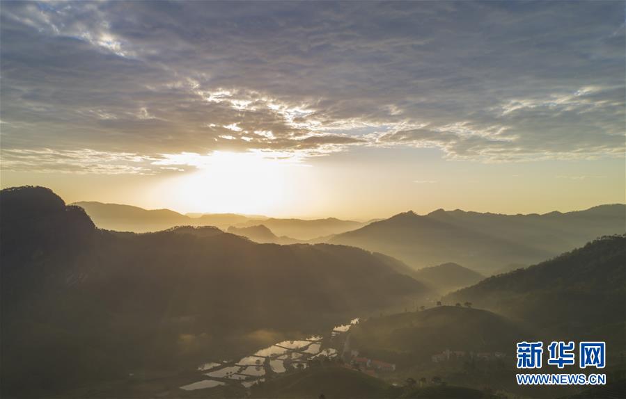 這是武夷山日出后的田園風(fēng)光(11月17日無人機(jī)拍攝)。新華社記者宋為偉攝