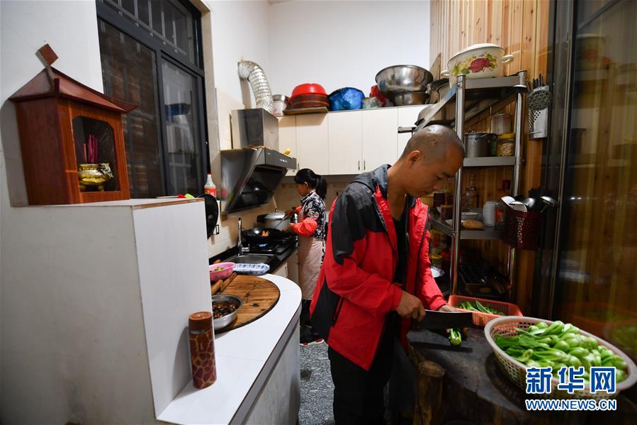 11月6日,鄉(xiāng)村攝影師曹加祥在自家的民宿內(nèi)為游客準備晚餐。新華社記者胡晨歡攝