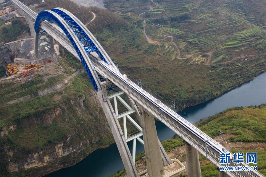 12月2日,一輛試驗列車駛過成貴高鐵鴨池河特大橋。當日,正在進行聯(lián)調(diào)聯(lián)試的成貴高鐵進入全線拉通空載模擬運行階段,試驗列車將在成都到貴陽區(qū)間內(nèi)全線路運行。線路全長650公里的成貴高鐵是我國“八縱八橫”高速鐵路網(wǎng)的重要組成部分,設(shè)計時速為250公里。新華社記者劉續(xù)攝