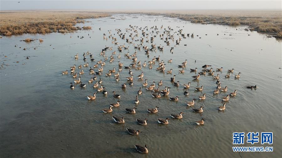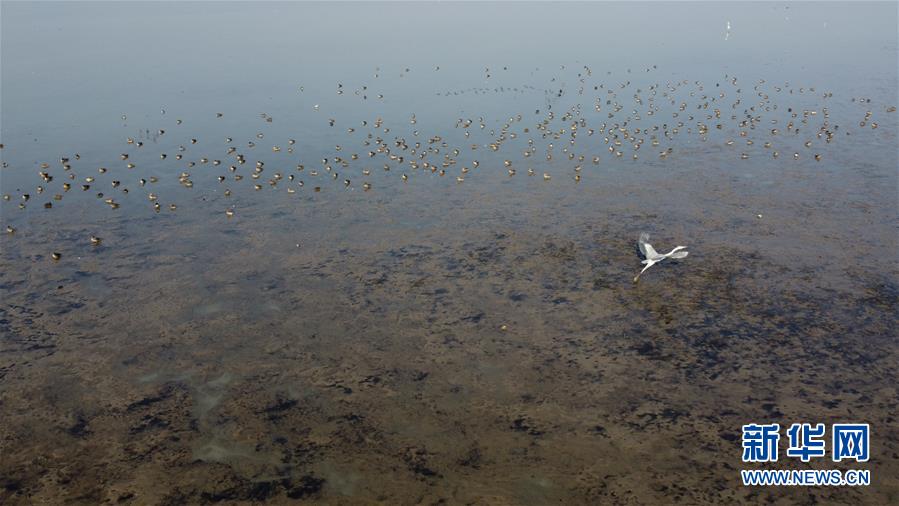 12月7日,一群候鳥在升金湖停留(無人機(jī)拍攝)。新華社記者張端攝