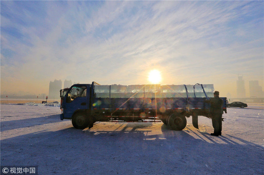 寒冬采冰人:起早貪黑 “淘金”冰雪