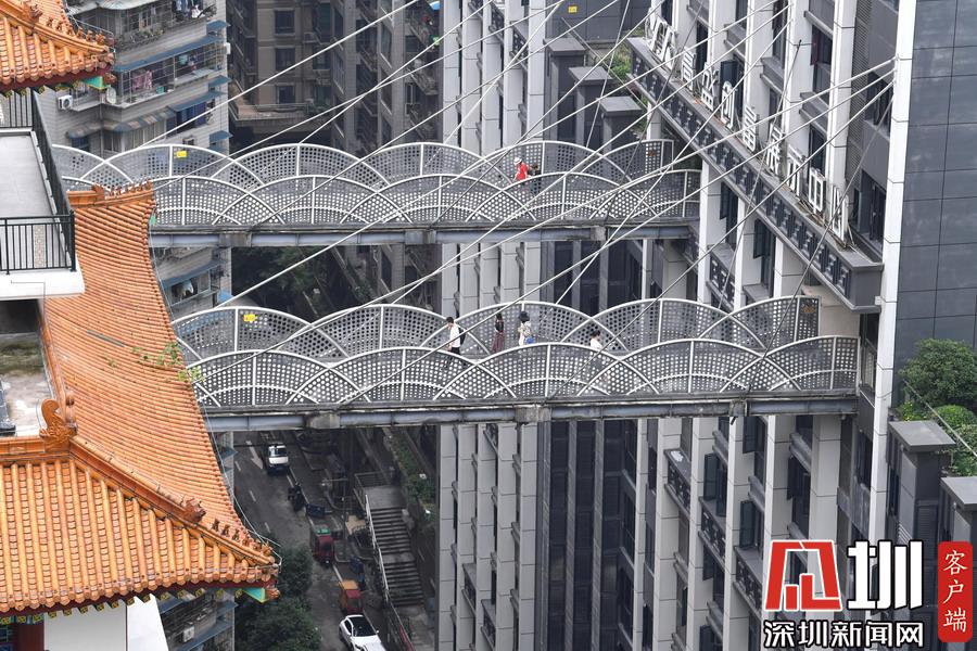 2018年4月11日,重慶市渝中區(qū)東營(yíng)街,一座人行天橋離地40米,在半空中呈“S型”繞樓而過(guò),好似一條飛揚(yáng)的絲帶。該天橋橋面寬約2米,長(zhǎng)約70米,連接大陽(yáng)溝派出所和鑫龍大廈的13樓,中間僅靠一根水泥墩支撐。