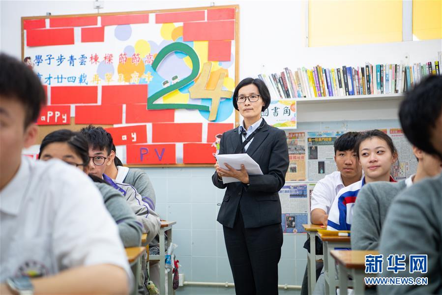 11月26日,澳門培華中學教師袁金淑在教室內,她已經工作了20年,主要負責數學及公民教育。 新華社記者 張金加 攝