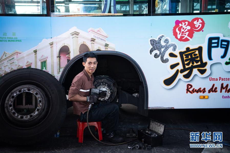 11月26日,澳門公共汽車股份有限公司鄭家松在工作,他已經工作了2年,主要負責為公交車做定期保養(yǎng)及維修。 新華社記者 張金加 攝