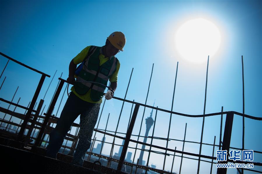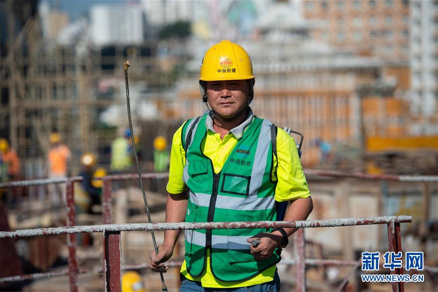 11月22日,澳門工地工人何錦在工地上,他已經工作了25年,主要負責處理工地事項。 新華社記者 張金加 攝