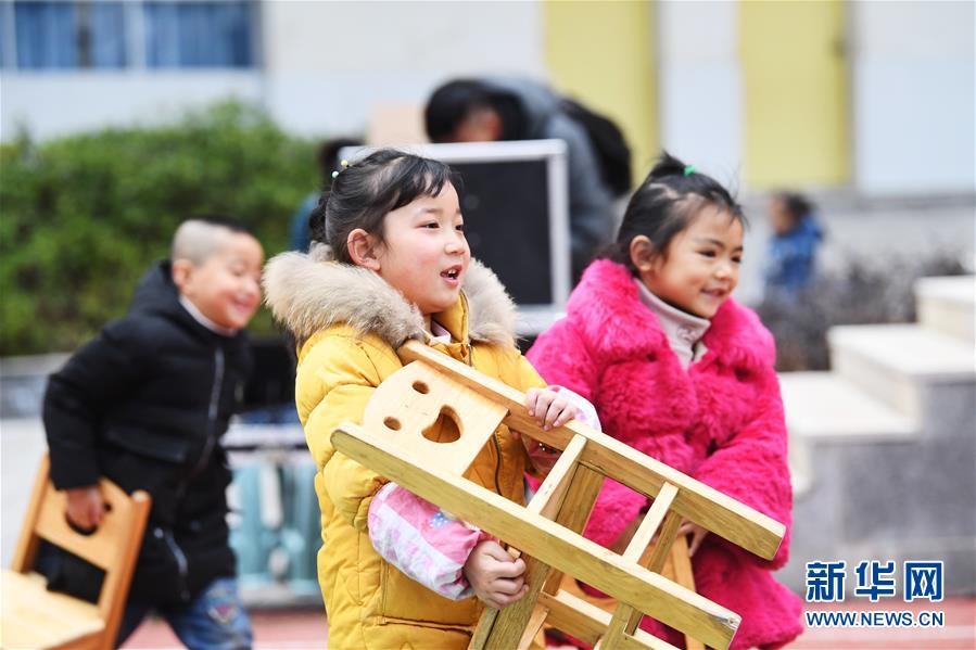 12月12日,中益鄉(xiāng)小學(xué)的同學(xué)們搬著小椅子前往操場(chǎng)觀看文藝表演。新華社記者 王全超 攝