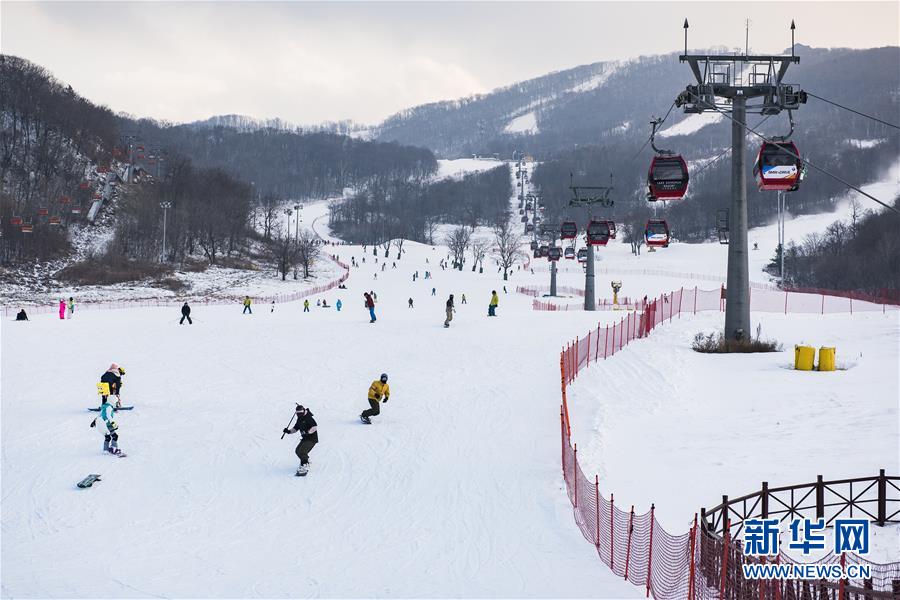 12月13日,滑雪愛好者在吉林市萬(wàn)科松花湖度假區(qū)滑雪。