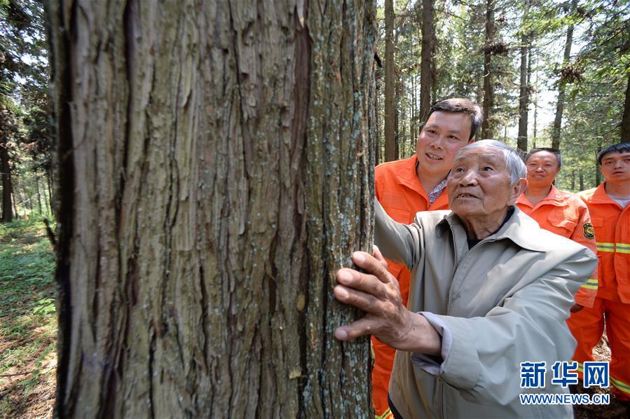 4月27日,在貴州省畢節(jié)市赫章縣平山國有林場,李代關老人(前)在查看當年和同事種的杉樹。今年88歲的李代關是貴州省畢節(jié)市赫章縣平山國有林場的一名退休職工,他1958年參加工作,成為一名林業(yè)工人,把畢生奉獻給了林業(yè)事業(yè)。在李代關的感召下,他的兒子和孫子都成為了護林員。經過幾代林業(yè)工人的努力,截至2018年底,赫章縣平山鎮(zhèn)的森林覆蓋率已達66.7%。新華社記者楊楹攝