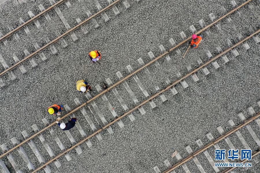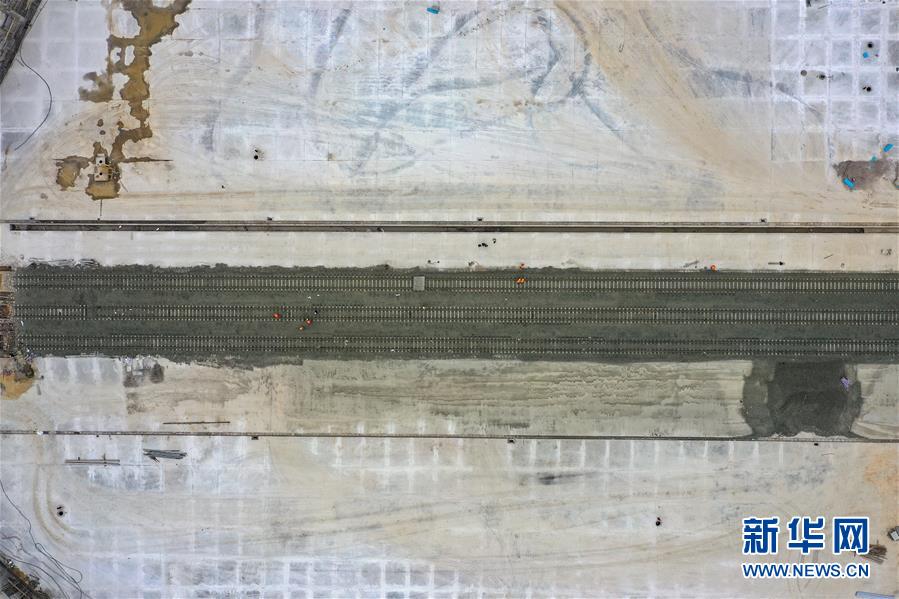 12月17日,中鐵八局建設(shè)者們?cè)诟拿茶F路口岸施工(無(wú)人機(jī)拍攝)。 新華社記者 劉續(xù) 攝