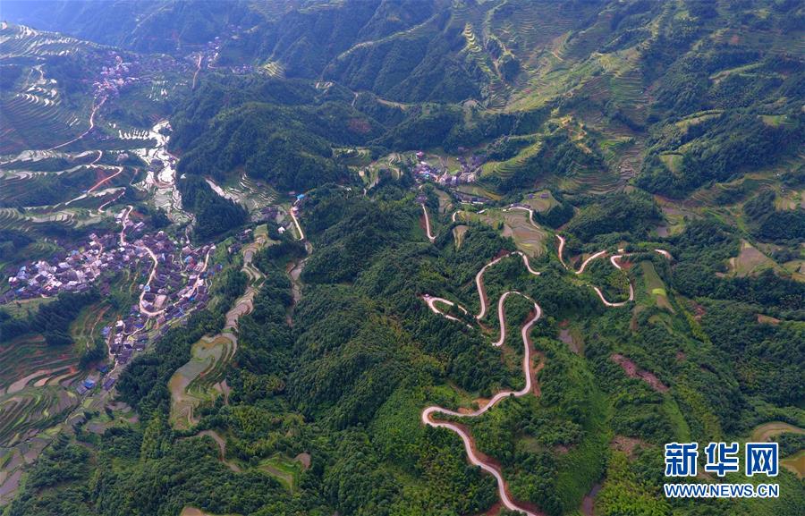這是融水苗族自治縣桿洞鄉(xiāng)歸江村的村屯公路(6月19日無(wú)人機(jī)拍攝)。新華社記者黃孝邦攝