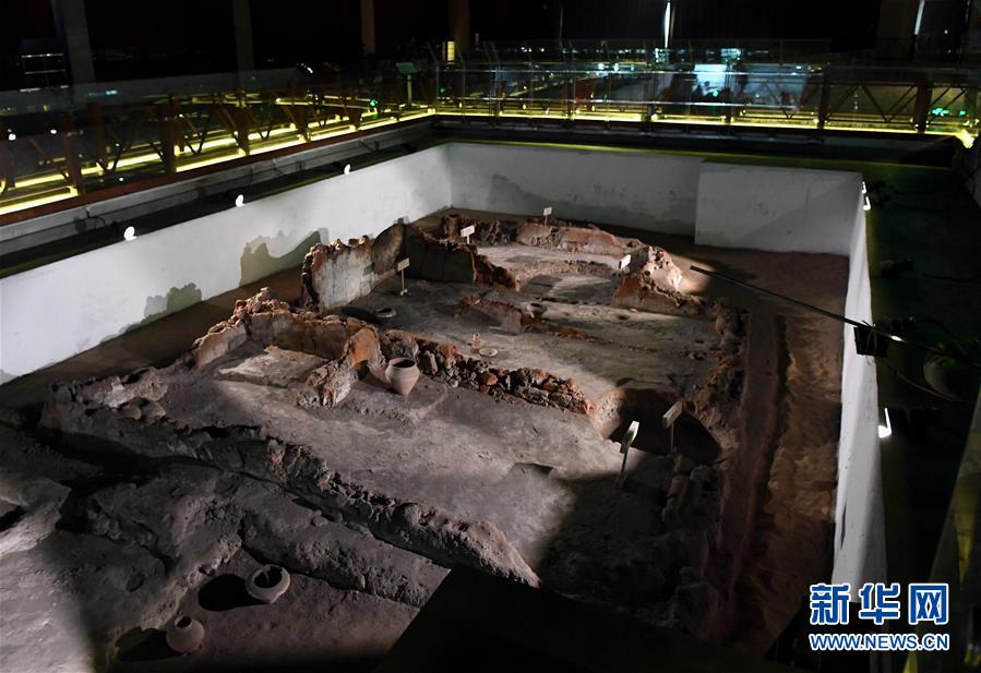 這是河南鄭州大河村遺址博物館內(nèi)的仰韶文化房基(12月11日攝)。