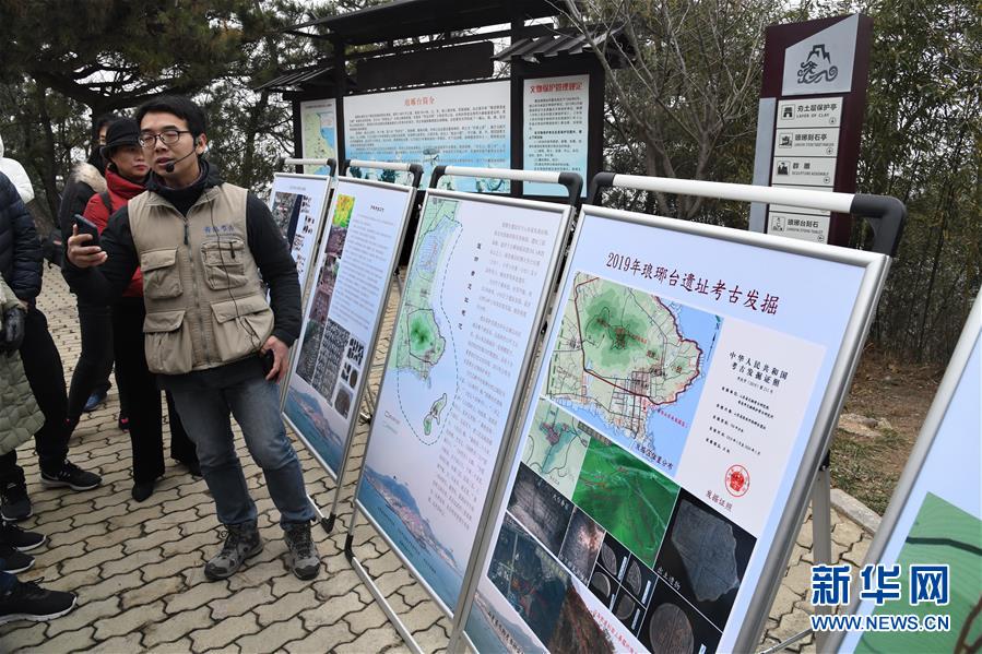考古隊(duì)員彭峪在介紹瑯琊臺(tái)遺址考古發(fā)掘的進(jìn)展(12月21日攝)。新華社記者李紫恒攝