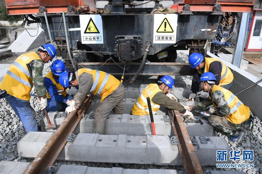 12月22日,中鐵二十四局工作人員在平潭海峽公鐵大橋鋪軌施工現(xiàn)場進行鋪軌作業(yè)。當日,總長為16.34公里的福平鐵路平潭海峽公鐵大橋鋪軌正式啟動。平潭海峽公鐵大橋是福州至平潭鐵路控制性工程,上層設(shè)計為時速100公里的六車道高速公路,下層為設(shè)計時速200公里的高鐵,大橋計劃2020年正式通車。新華社記者林善傳攝