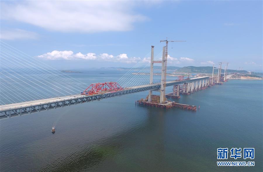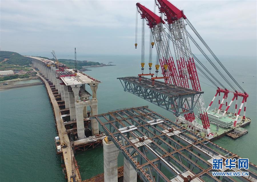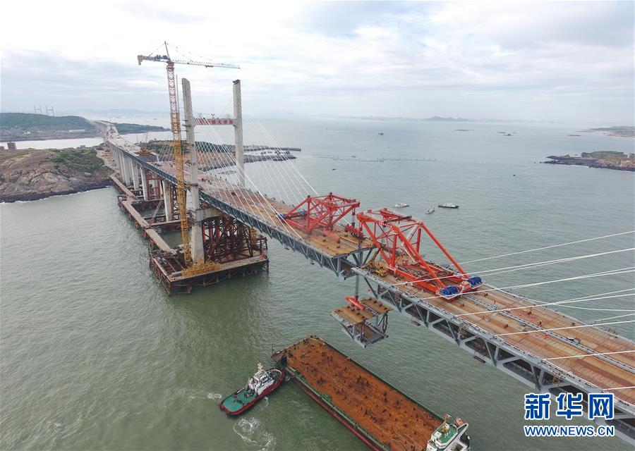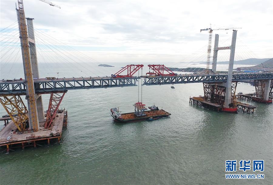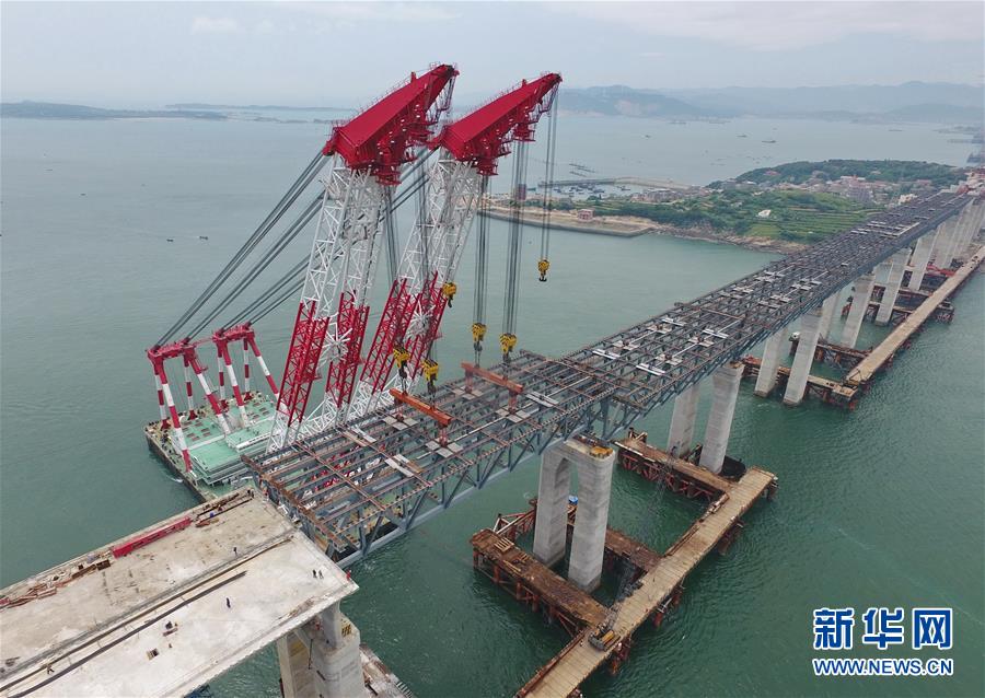 9月21日,平潭海峽公鐵大橋鼓嶼門航道橋的鋼桁梁在吊裝中(無人機拍攝)。9月25日上午,隨著一段長17米、重473噸的鋼桁梁被精確固定到位,總長16.34公里的平潭海峽公鐵大橋合龍貫通。平潭海峽公鐵大橋是福州至平潭鐵路控制性工程,也是“十三五”規(guī)劃中北京至臺灣高鐵的先期工程。大橋起于福州市長樂區(qū),“踏”過四座小島后抵達中國第五大島平潭,上層設(shè)計為時速100公里的六車道高速公路,下層為設(shè)計時速200公里的高鐵。據(jù)福建福平鐵路公司介紹,大橋計劃2020年正式通車。在六年建設(shè)過程中,平潭海峽公鐵大橋所應(yīng)用研發(fā)的多項技術(shù)、裝備創(chuàng)下國內(nèi)外紀錄。新華社記者林善傳攝