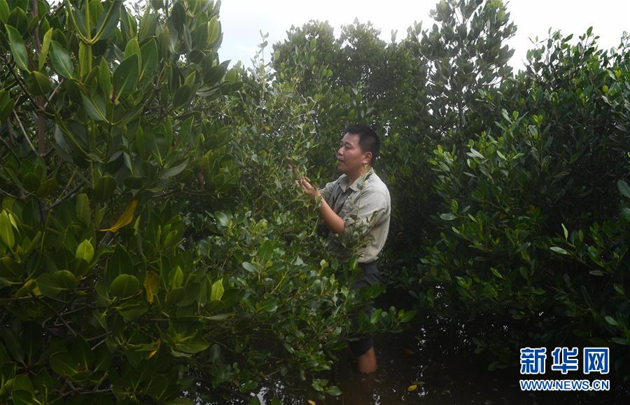 海南東寨港國家級自然保護區(qū)林業(yè)工程師馮爾輝在保護區(qū)內(nèi)的灘涂上查看紅樹林(12月18日攝)。 馮爾輝2009年大學畢業(yè)后來到保護區(qū)工作,小時候他家就住在紅樹林邊上,他從小和紅樹林打交道,喜歡動植物和鳥類。外貿(mào)專業(yè)畢業(yè)的他邊工作邊學習,目前主要從事鳥類監(jiān)測、紅樹林保育、自然教育等工作?!凹t樹林看著我長大”,馮爾輝說,濕地保護的工作非常有意義。 新華社記者楊冠宇攝