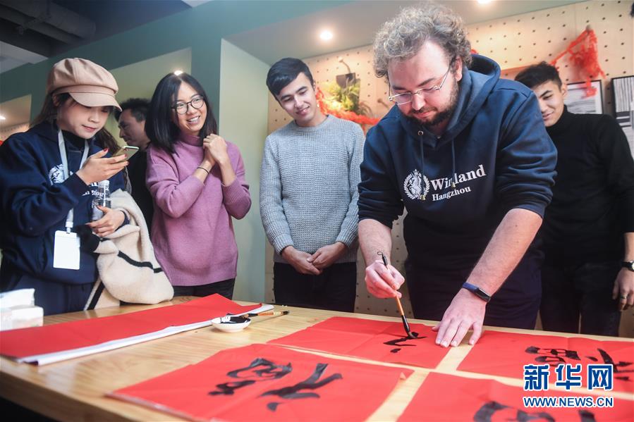 當日,浙江省杭州市拱墅區(qū)上塘街道的瓜山新苑社區(qū)舉辦居民入住后的首個迎新年活動,社區(qū)內的中外青年一起體驗寫春聯(lián)、貼福字、包餃子等中國傳統(tǒng)習俗,在熱鬧喜慶的氣氛中迎接即將到來的新年。