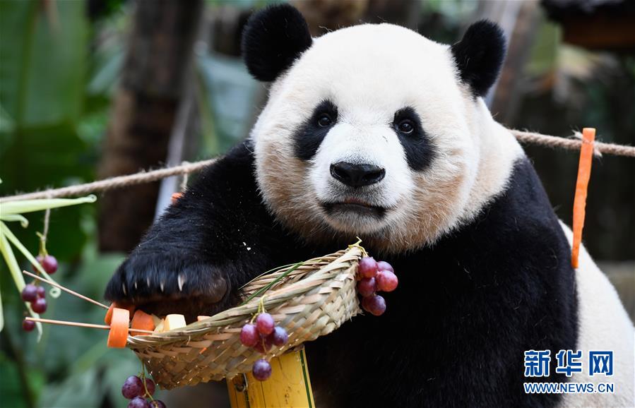 海口:大熊貓“擼串”迎新年