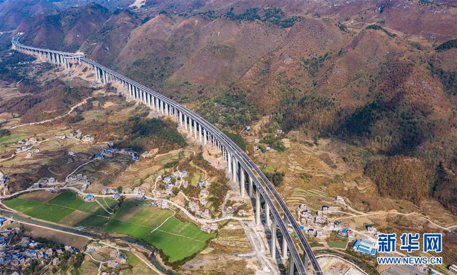 這是中冶集團(tuán)承建的紫望高速火花特大橋(無人機(jī)照片,1月1日攝)。新華社記者陶亮攝