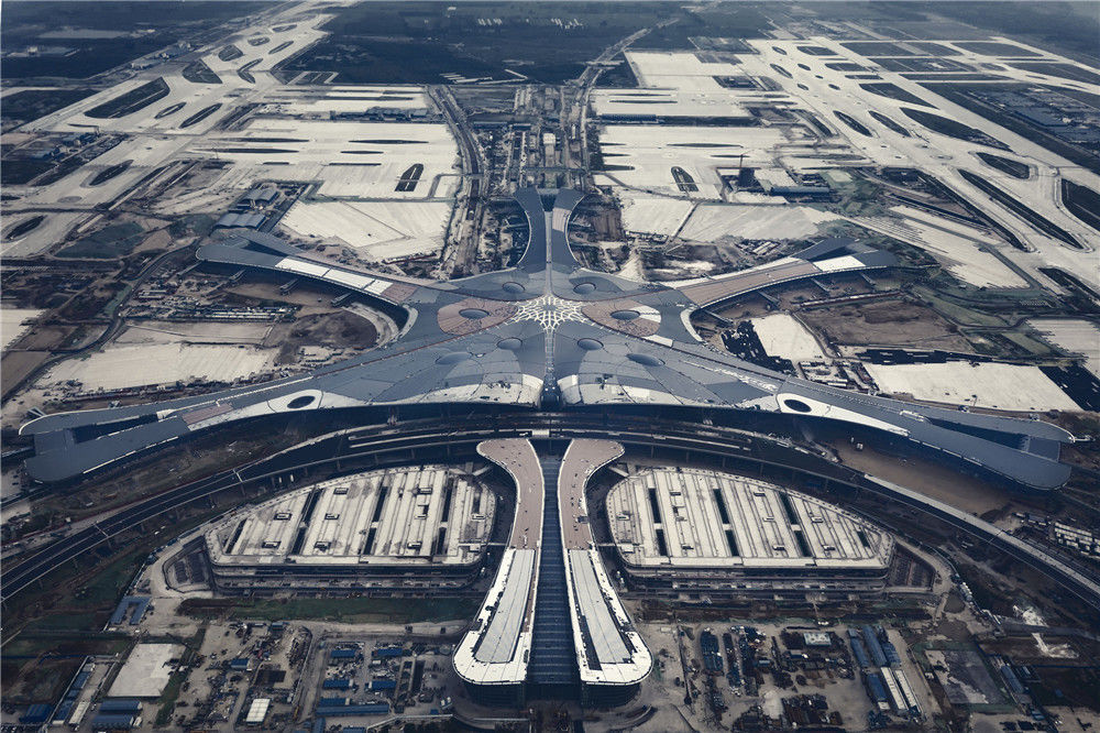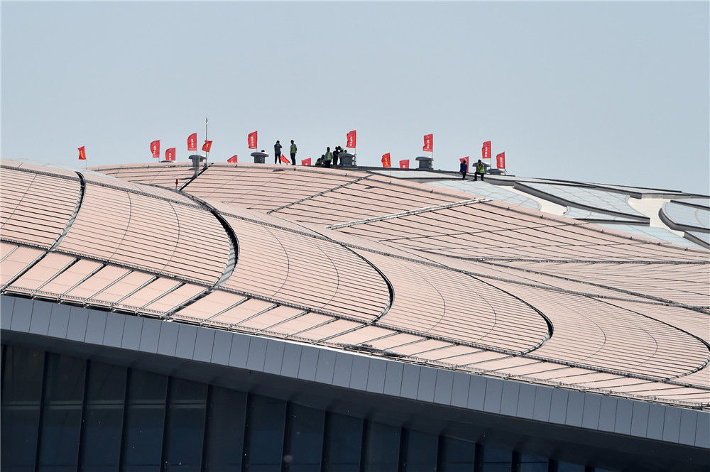 2019年5月24日,北京,新機(jī)場(chǎng)建設(shè)距離竣工時(shí)間還有37天,工程進(jìn)入倒計(jì)時(shí)。機(jī)場(chǎng)開建至今不到5年時(shí)間,機(jī)場(chǎng)施工工程將于6月底竣工,將于9月底投入運(yùn)營(yíng),該機(jī)場(chǎng)有望成為世界上規(guī)模最大的機(jī)場(chǎng)之一。任振朝/千龍圖像/視覺(jué)中國(guó)