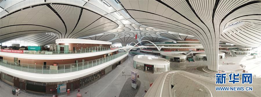 2019年4月26日,北京大興國(guó)際機(jī)場(chǎng)將于9月底正式通航。工程建設(shè)進(jìn)入總攻階段,目前,航站樓內(nèi)部裝飾進(jìn)行收尾的工作。武輝/千龍圖像/視覺(jué)中國(guó)
