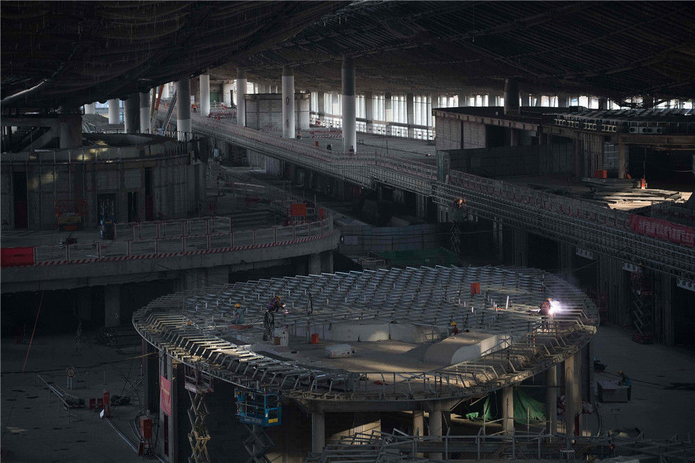 2019年1月20日,北京,探訪北京大興國(guó)際機(jī)場(chǎng)航站樓,建設(shè)工地正在如火如荼地有條不紊地建設(shè)之中。丁幫學(xué)/千龍圖像/視覺(jué)中國(guó)