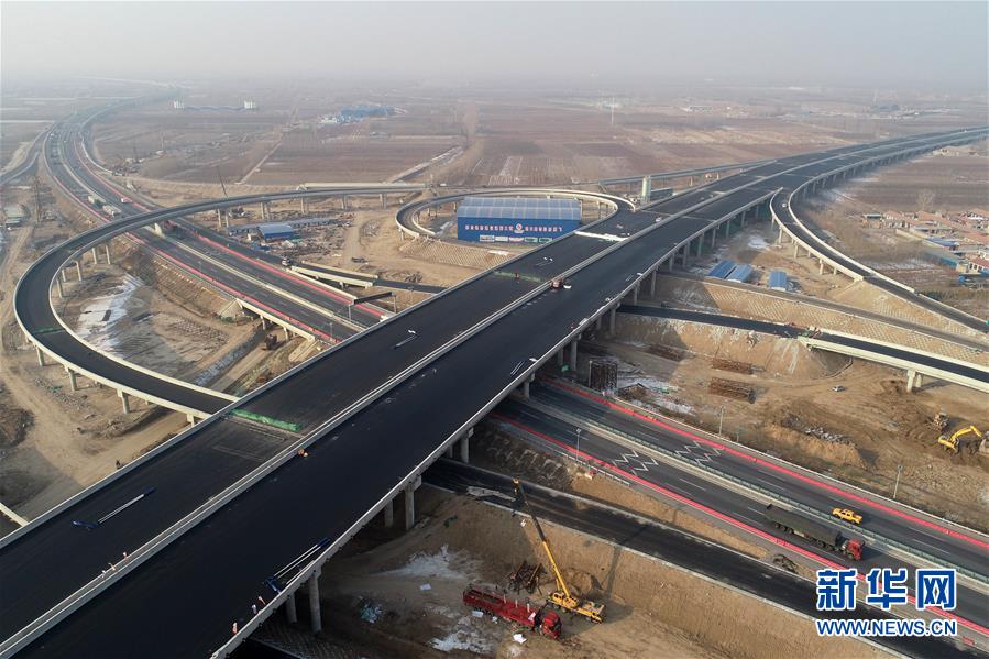 這是1月3日拍攝的北京大興國(guó)際機(jī)場(chǎng)北線高速公路廊坊段王場(chǎng)互通樞紐(無(wú)人機(jī)照片)。
