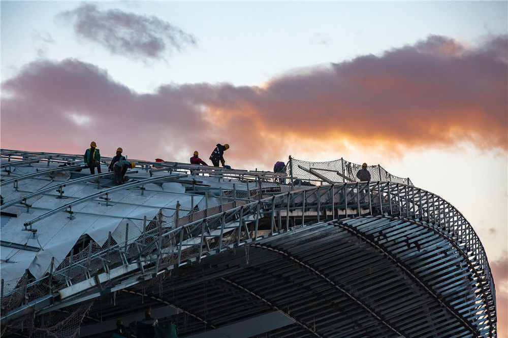 2018年12月19日,北京大興國(guó)際機(jī)場(chǎng)航站樓的屋面已基本完工,一只金色“鳳凰”完整地出現(xiàn)在北京城南。視覺(jué)中國(guó)