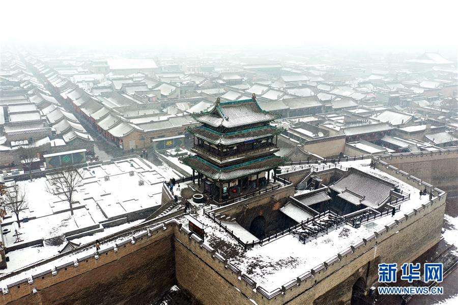 當(dāng)日,山西省平遙縣迎來降雪,雪中的平遙古城銀裝素裹,美景如畫。平遙古城是目前中國保存最完整的古代縣級城池之一,1997年被列入世界文化遺產(chǎn)名錄。