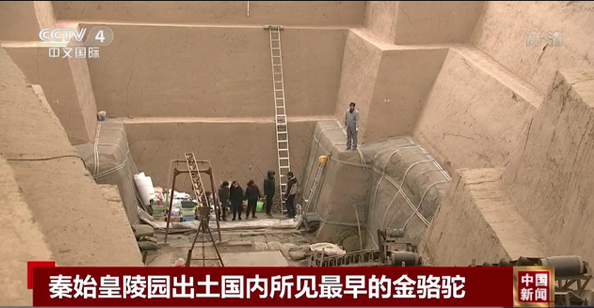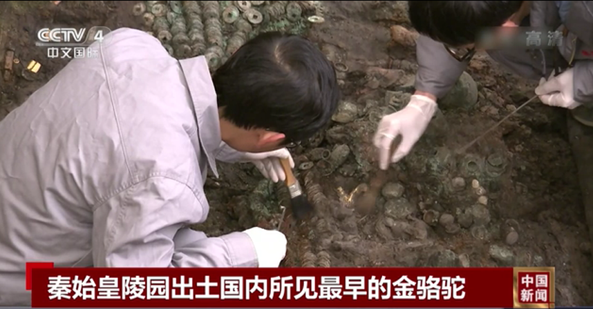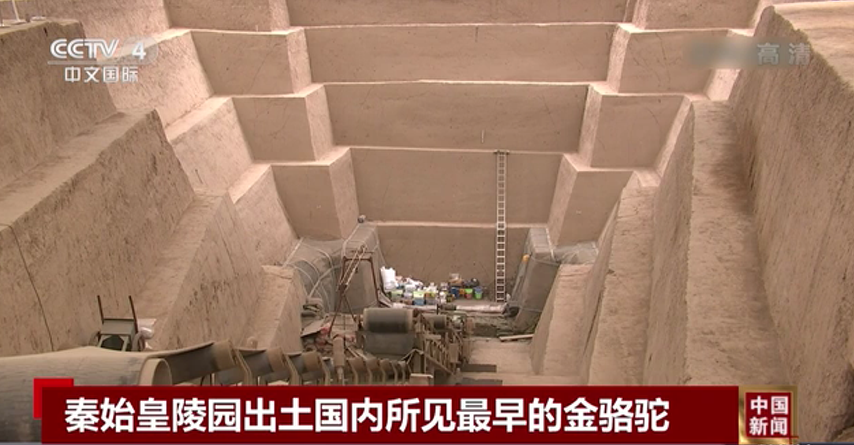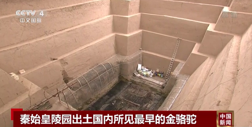 近日,秦始皇帝陵博物院公布最新考古成果:考古人員在秦陵在秦陵外城西側(cè)的陵區(qū),對一座編號為一號墓葬(QLCM1)的“中字形”墓葬進行了發(fā)掘,取得重要收獲。該墓為目前發(fā)現(xiàn)秦代規(guī)模最大、等級最高、保存最完好的大型墓葬,填補了秦代高等級墓葬的空白。出土了目前國內(nèi)所見最早的單體金駱駝。