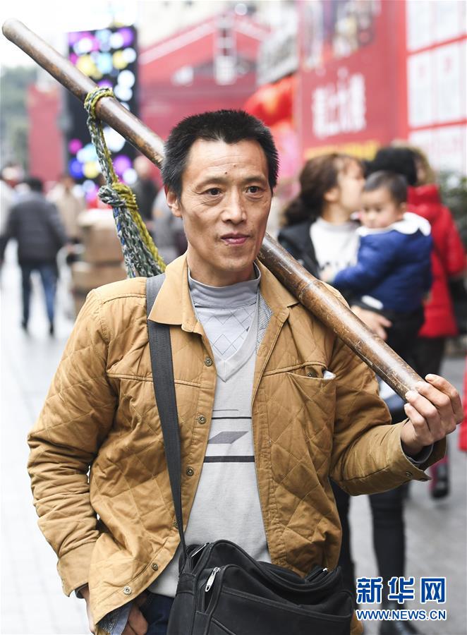 冉光輝在重慶朝天門(mén)大正商場(chǎng)附近等活(1月5日攝)。新華社記者王全超攝
