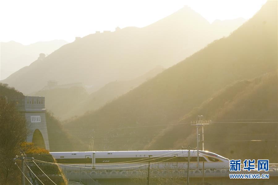 2019年12月30日,G2418次列車駛過居庸關(guān)長城。當(dāng)日,北京至張家口高速鐵路開通運(yùn)營。 新華社記者 邢廣利 攝