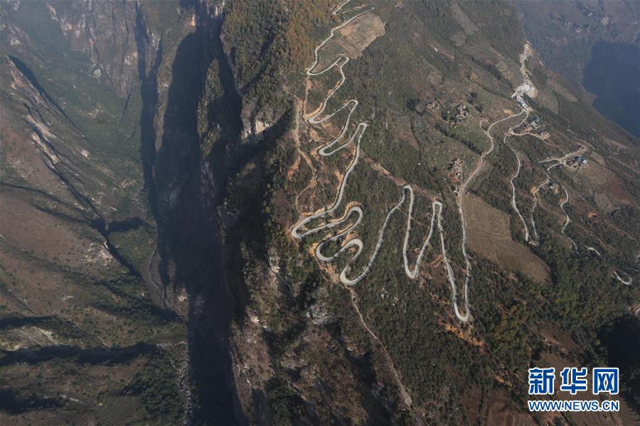 俯瞰布拖縣烏依鄉(xiāng)阿布洛哈村通村公路的起點(diǎn)拉果鄉(xiāng)偉木村。從拉果鄉(xiāng)政府到阿布洛哈村通村公路的起點(diǎn)位置要經(jīng)過54個(gè)回頭彎(2019年12月7日攝)。 2019年12月31日,四川涼山彝族自治州布拖縣烏依鄉(xiāng)阿布洛哈村的懸崖擺渡車正式運(yùn)行,四川最后一個(gè)“無公路村”打通了對外通道,改變了閉塞的交通狀況。 阿布洛哈村三面環(huán)山,幾乎全是懸崖絕壁;一面依水,金沙江支流西溪河流淌而過。以前,村民們進(jìn)出村需攀爬懸崖上鑿出來的一條小路;村里的物資主要靠馬馱人背,走一趟要3個(gè)多小時(shí)。交通成為村里脫貧攻堅(jiān)最大的“硬骨頭”,全村65戶253人,目前仍有建檔立卡貧困戶29戶182人。 為打通交通瓶頸,當(dāng)?shù)卣疀Q定修建一條3.8公里的四級通村公路。2019年11月,工程在進(jìn)行到“最后一公里”時(shí),施工隊(duì)伍發(fā)現(xiàn)懸崖兩側(cè)多為碎屑巖、變質(zhì)巖等,原本規(guī)劃修建的C型隧道很難推進(jìn)。專家決定修建懸崖擺渡車,確保村民年底前能順利出行;同時(shí),改C型隧道為全隧道,繼續(xù)修建通村公路,項(xiàng)目預(yù)計(jì)2020年4月完工。 新華社記者 江宏景 攝