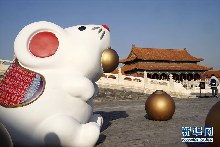 2019年12月27日在北京故宮太和門廣場拍攝的“吐寶鼠”。 由故宮博物院、騰訊出品的視頻節(jié)目《故宮賀歲》將于2020年1月1日正式上線,節(jié)目每周1集,每集時(shí)長30分鐘,計(jì)劃推出5集。節(jié)目里,主持人將與專家、嘉賓等一起在故宮探尋傳統(tǒng)過大年的習(xí)俗。 新華社記者 金良快 攝