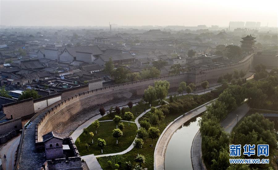 這是7月20日無(wú)人機(jī)拍攝的平遙古城墻與護(hù)城河。平遙古城城墻總周長(zhǎng)6163米,墻高約12米,把面積約2.25平方公里的平遙縣城隔為兩個(gè)風(fēng)格迥異的世界。城墻以?xún)?nèi)街道、鋪面、市樓保留明清形制,城墻以外為新城。