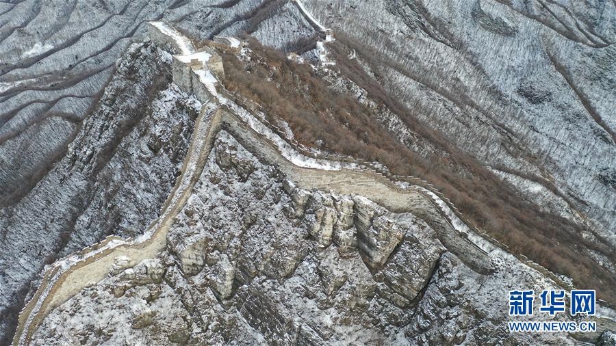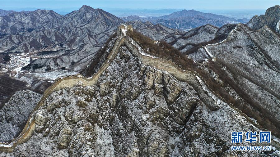 這是1月7日拍攝的北京箭扣長(zhǎng)城雪景(無(wú)人機(jī)照片)。近日,北京迎來(lái)降雪天氣。雪后的箭扣長(zhǎng)城內(nèi)外,惟余莽莽,蔚為壯觀。 新華社記者 陳曄華 攝