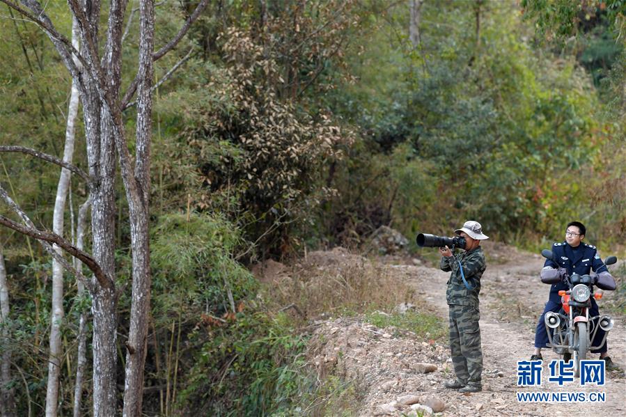 在江西九連山國(guó)家級(jí)自然保護(hù)區(qū),陳志高在山里觀測(cè)拍攝(1月8日攝)。新華社記者 彭昭之 攝