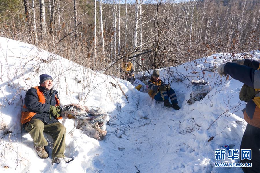 1月8日,西羅奇維修工隊(duì)工作人員在作業(yè)現(xiàn)場坐在雪地上臨時(shí)休息。新華社記者才揚(yáng)攝