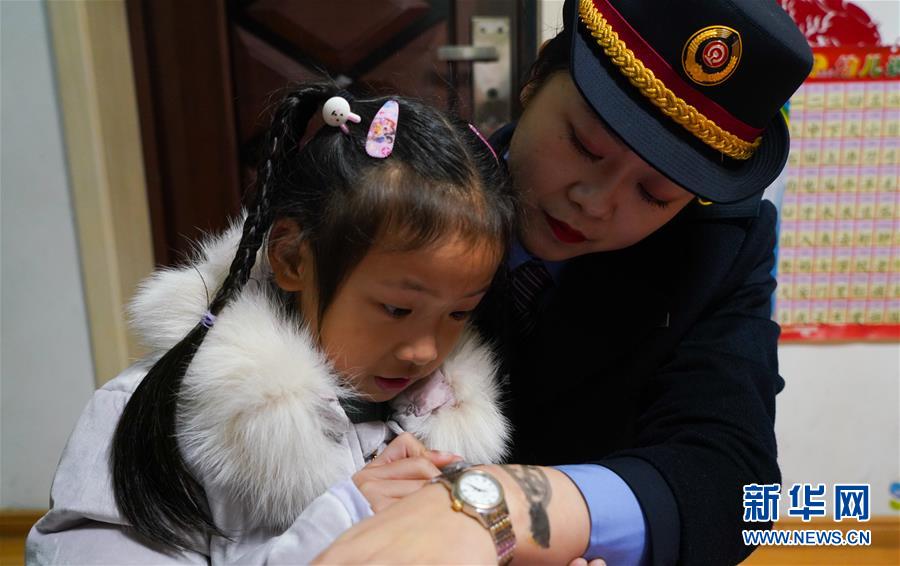 2020年1月3日晚,卞菁值乘從井岡山開往北京西的D734次列車,途經(jīng)南昌西站。思念媽媽的女兒朱梓芮在父親的陪同下,來到南昌西站站臺(tái)與卞菁團(tuán)圓,一家三口在站臺(tái)度過了8分鐘的團(tuán)聚時(shí)光。 在昏暗的站臺(tái),朱梓芮用水筆將媽媽手上略有些模糊的“手表”重新描繪清晰。隨著鈴聲響起,車門將一家人隔開,列車遠(yuǎn)去,一家人眼眶變得濕潤起來……