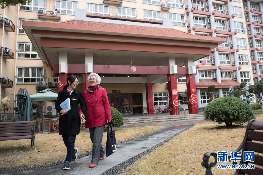 1月17日,一上午的活動結束,張丹俠(左)帶著王育華回杭州市社會福利中心的宿舍。新華社記者 翁忻旸 攝