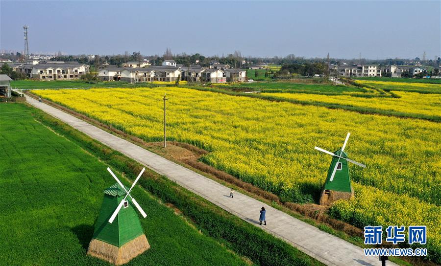 2月25日在四川省崇州市農(nóng)業(yè)產(chǎn)業(yè)功能區(qū)拍攝的油菜花田(無人機照片)。 初春時節(jié),正值農(nóng)時。成都平原西部的大邑、崇州等縣市油菜長勢良好,一片生機盎然的景象。 新華社記者 王曦 攝