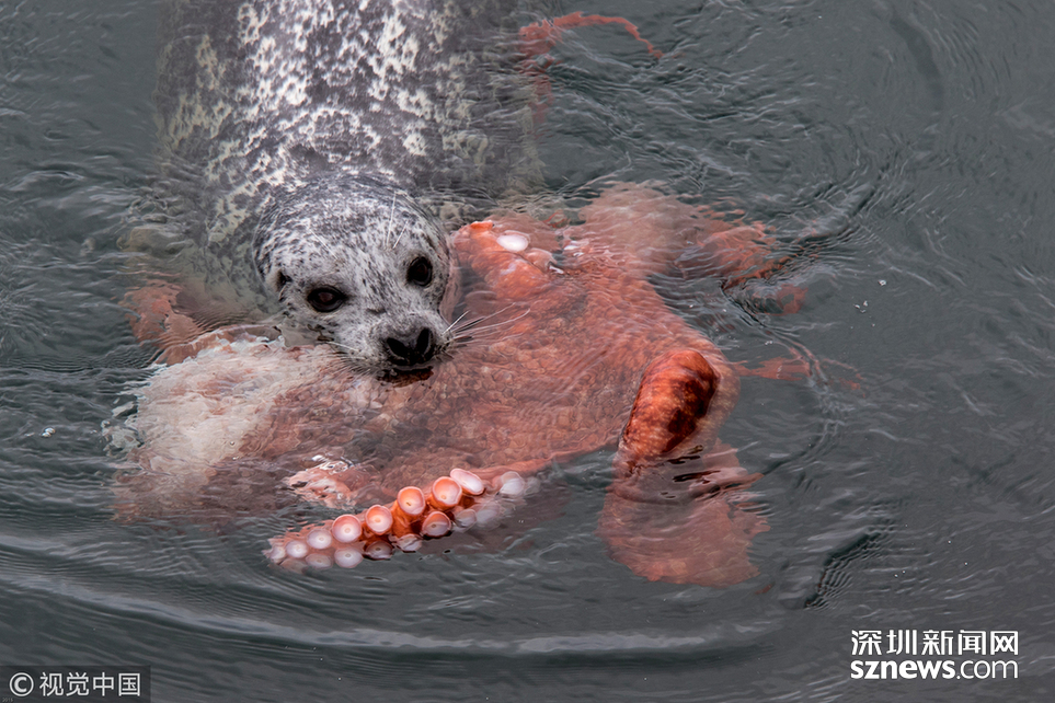 當(dāng)?shù)貢r(shí)間2015年2月12日,加拿大奧格登角,一只海豹與一只巨大的章魚死戰(zhàn)。這場(chǎng)惡戰(zhàn)最終以海豹的勝利而告終。商人Bob Ianson日前在與家人旅行時(shí),意外拍到巨型章魚與海豹搏斗的全過程。