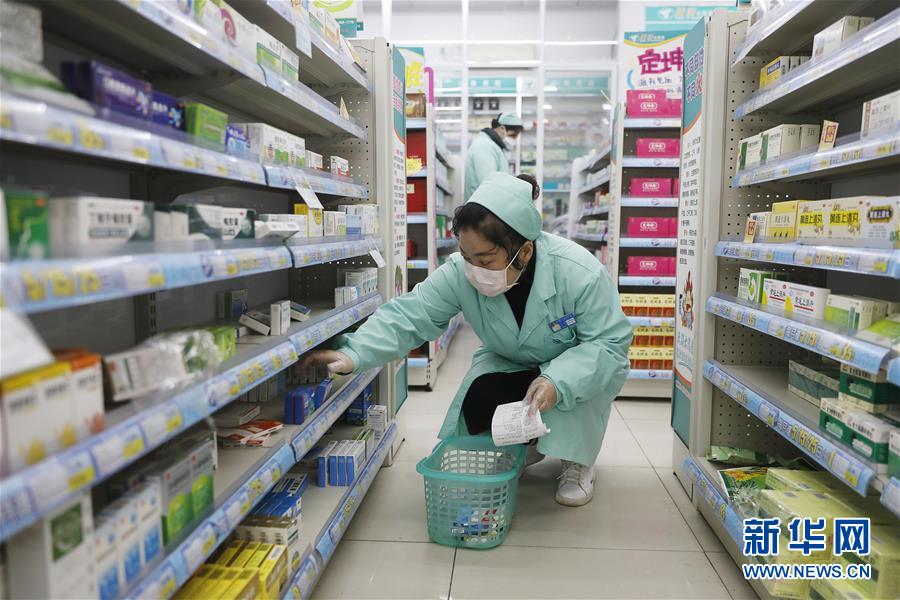 2月22日,王春波在藥店內(nèi)為居民配藥。新華社記者熊琦攝