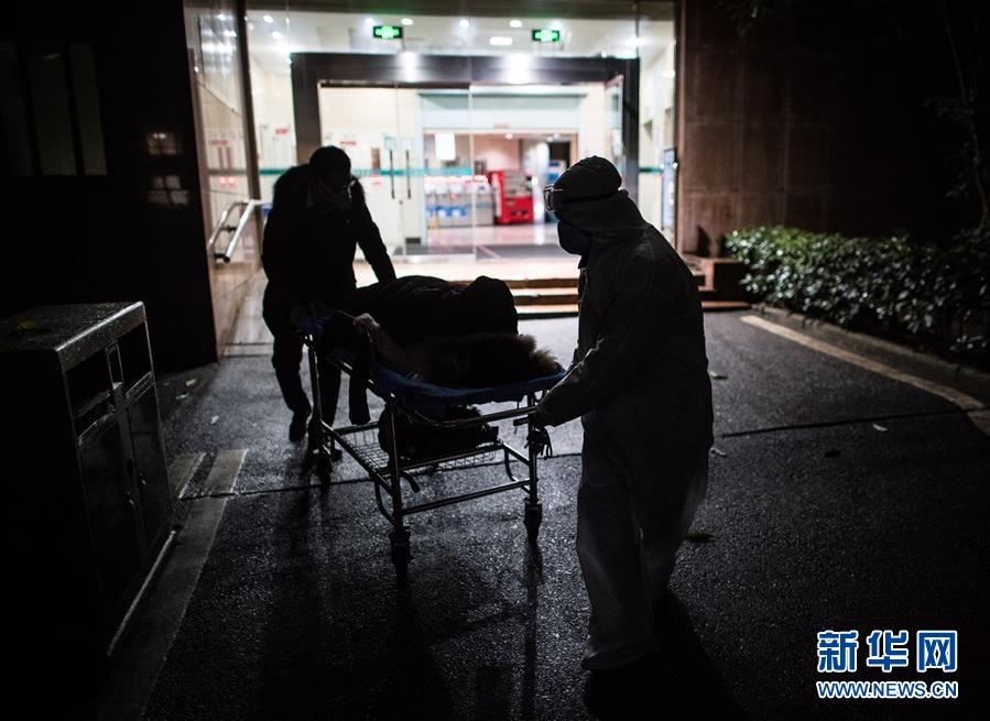 2月29日凌晨,王震(右)協(xié)助將產(chǎn)婦劉婷送至CT室做產(chǎn)前檢查。新華社記者 肖藝九 攝